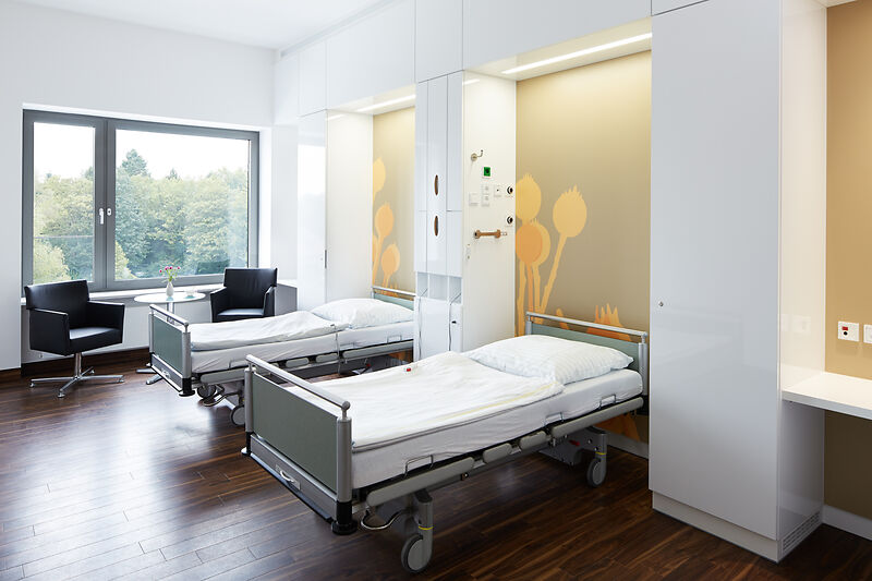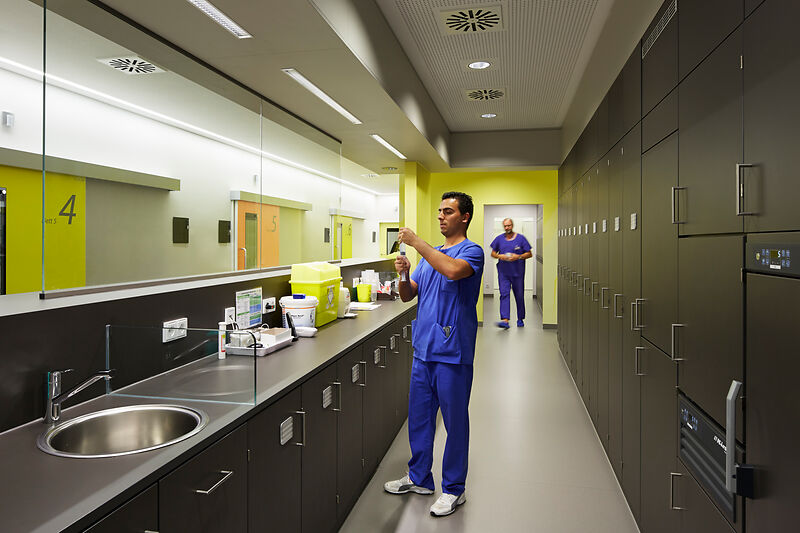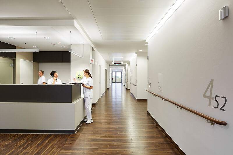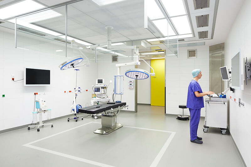 Es entstehen neue Pflegebereiche, ein zentraler Operationsbereich mit 5 OP-Sälen, eine Intensivstation, ein Links-Herz-Katheter-Messplatz sowie eine neue Endoskopieabteilung.
